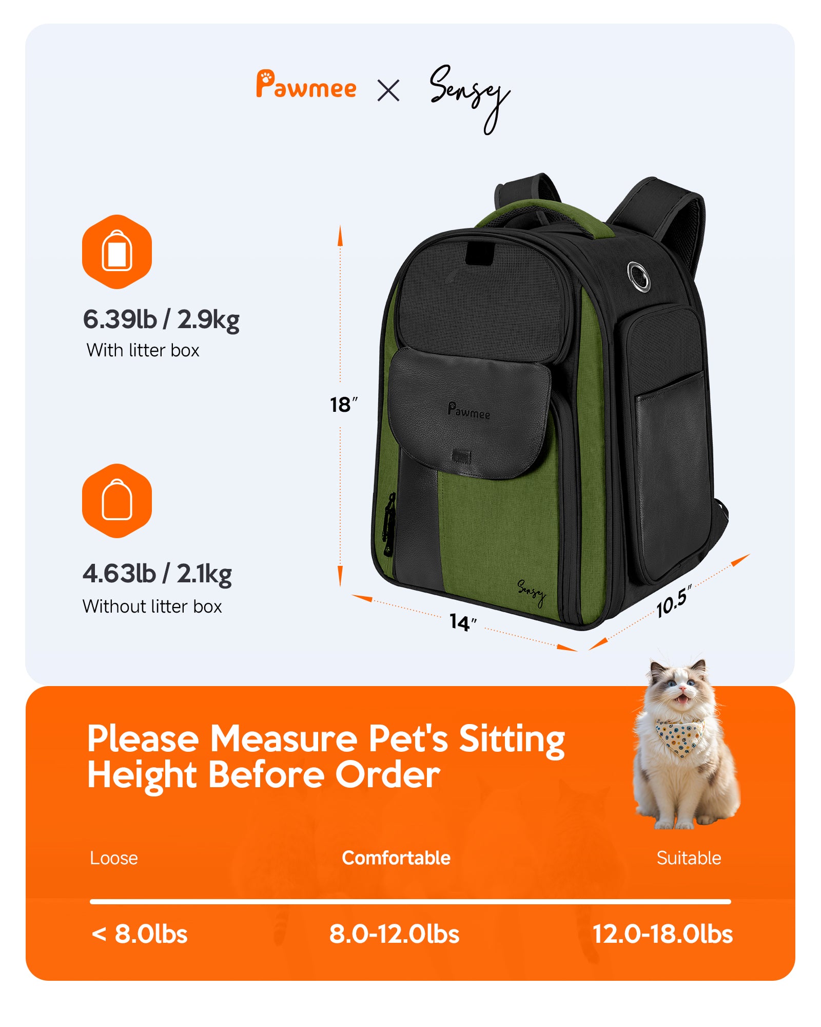 Pawmee x Sensej Cat Carrier Backpack with Litter Box Stowable